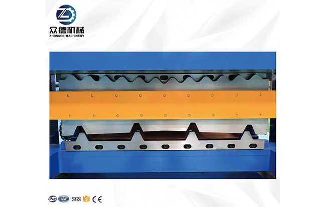 850波纹+750梯形双层压瓦机通过上下两层结构设计,可同时或独立生产850波纹型和750梯形压瓦,满足不同建筑风格的需求。该设备集成了进料导入平台、成型主机、剪切装置、液压站及PLC电脑控制系统,实现自动化生产与高精度成型。